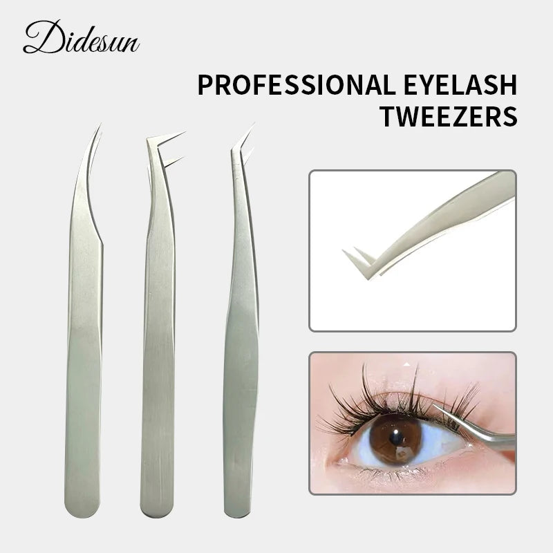 Didesun High Precision Silver Lash Tweezers Anti-static Stainless Steel Eyelash Tweezers 1 Pcs